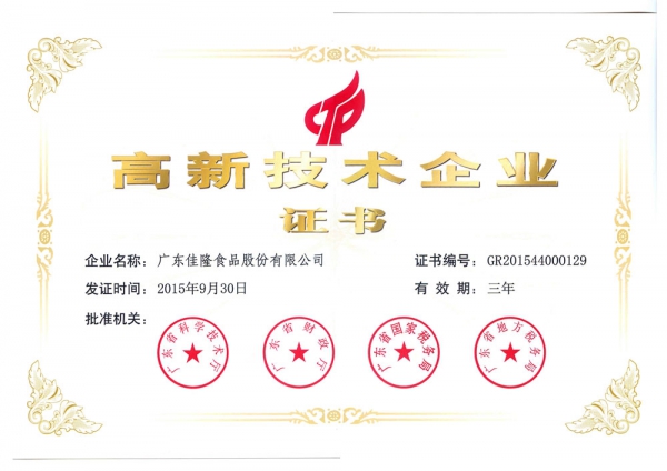 高新技术企业证书2015